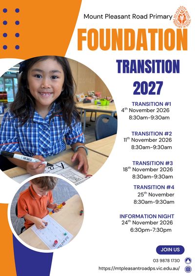 1. Visit our school website https://mtpleasantroadps.vic.edu.au/ to book a school tour.